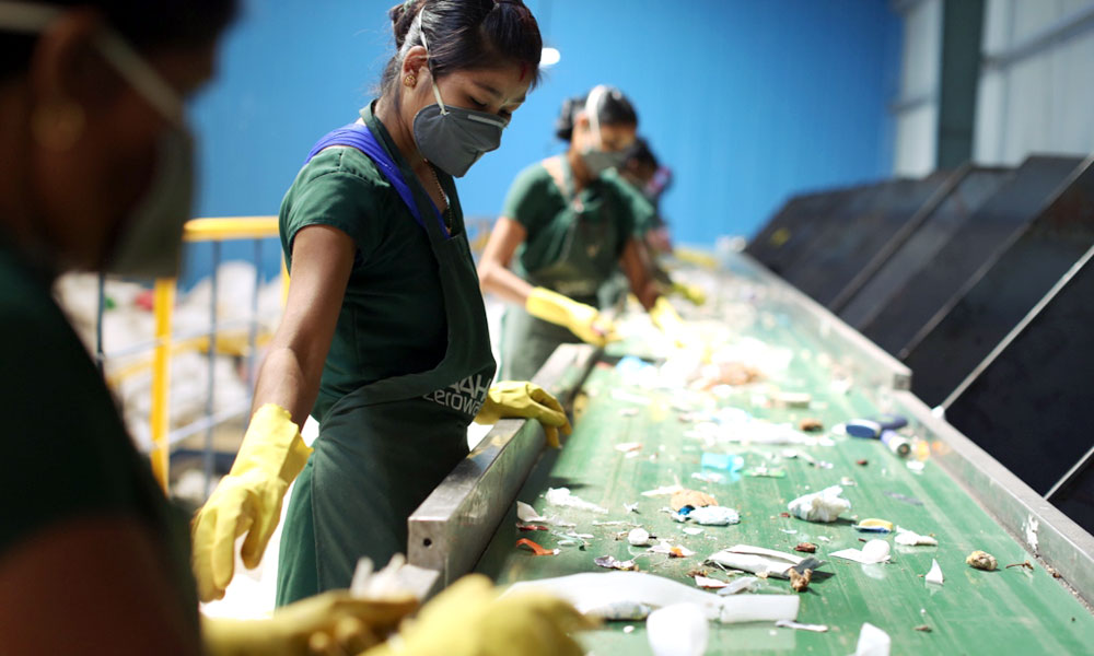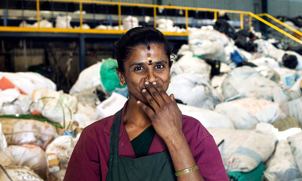 Low-value plastic is collected, processed and reused by Saahas Zero Waste - a waste management service in India that employs and empowers waste pickers to tackle plastic waste.